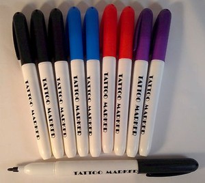 Fine tip temporary tattoo marker, assorted, 1 pack.