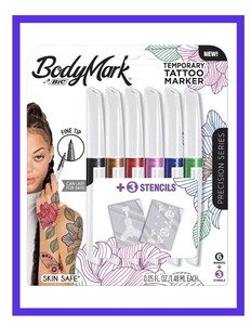 Custom tattoo prices vary by size: Temporary tattoo marker, black, 1 pack. New bodymark temporary tattoo markers from bic allow you to show off your creativity without the commitment of a permanent tattoo. Start by drawing on your design using the fine nib of the black tattoo pen. Temporary tattoo marker, black, 1 pack. Henna tattoos can last up to 3 weeks. Fine tip temporary tattoo marker, assorted, 1 pack. Washable ink lets you create unique temporary tattoos. Each pen has a flexible felt tip to let you draw thin or broad lines easily on your skin. Express yourself on skin with bodymark by bic temporary tattoo markers! Sort order (ascending) sort by (position) $29.99. Purple and black markers great for tweens, teens, and adults temporary tattoo art. Wash and dry the skin.